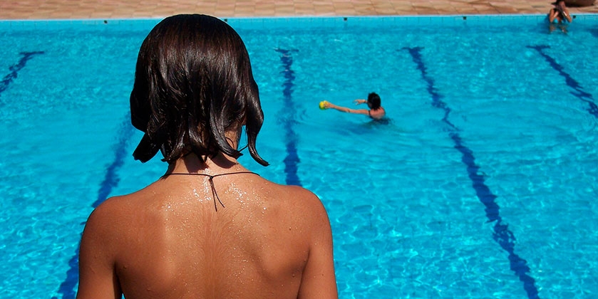 Onze broodjes en salades worden uit de koelkast gehaald. Ik dek de tafel, voor zover je het zo kunt noemen, en maak thee met het water uit onze thermosfles. Na de lunch ruimen we af en springen opnieuw in het zwembad. De temperatuur stijgt. Steeds meer mensen gaan even het water in om af te koelen. Maar er is nog steeds genoeg plaats in het bad om baantjes te trekken. Ik lig in mijn luie klapstoel en sla ze gade: jonge mensen, oude mensen, flinke mensen, iele mensen. Alle soorten, maten en kleuren zie je hier. Een man gaat langzaam met zijn rollator zijn hondje uitlaten. We groeten elkaar en maken kort even een praatje.